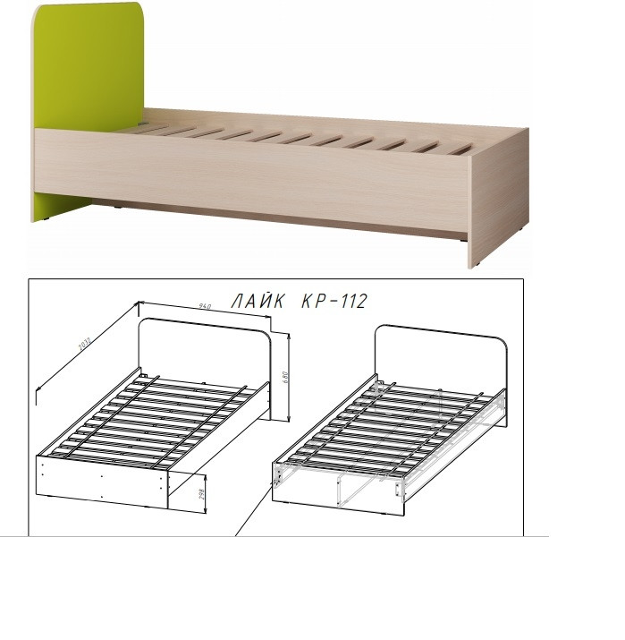 - Кровать: Ширина 1832 мм x Высота 650 мм x Глубина 850 мм. Спальное Место 1800*800 мм.