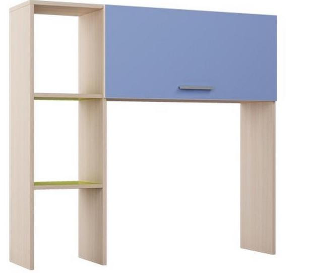 • Надстройка состоит из секции, закрытой фасадом Синего цвета, и отсека с открытыми полками цвета Лайм, которые имеют возможность устанавливаться как с правой, так и с левой стороны, для этого необходимо просто выбрать сторону, к которой будет прибиваться задняя стенка ЛДВП.