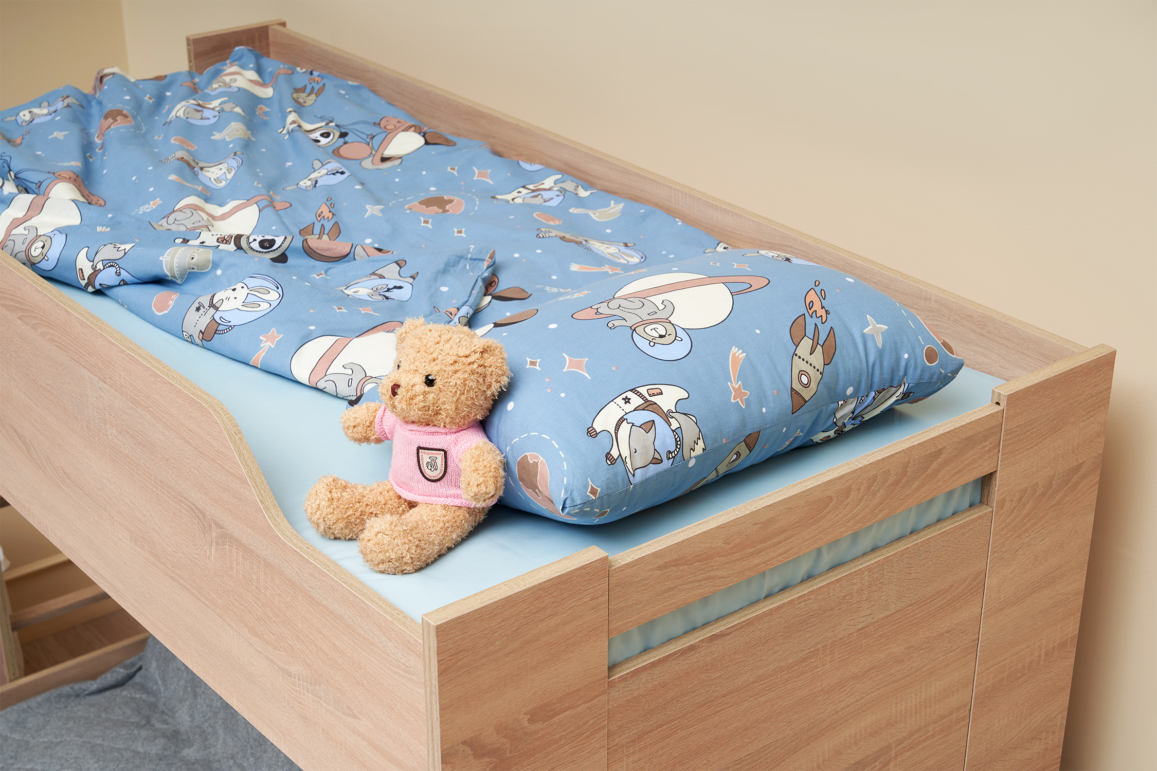 Механизм трансформации дивана: «Книжка». Рекомендуемая высота матраса на верхний ярус 17 см. Максимальная нагрузка на верхний ярус 50 кг. Лестница может быть установлена с обеих сторон кровати. Высота бортика 30 см. Максимальная нагрузка на нижний ярус 90 кг. Чехол съемный.