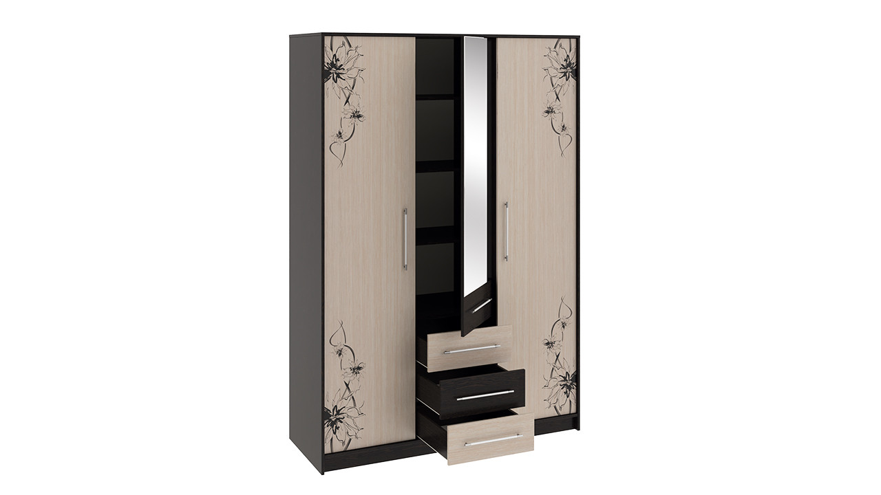 • Шкаф:  Ширина 1506 мм х Высота 2203 мм х Глубина 560 мм. Цвет: Венге Цаво/Дуб Белфорт с Рисунком.